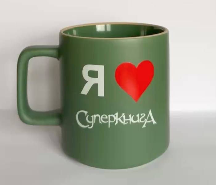 Горнятко "Я люблю Суперкнигу". Завітай на каву до Суперкниги!  Керамічне, матове, пісочний обідок; в картонній упаковці